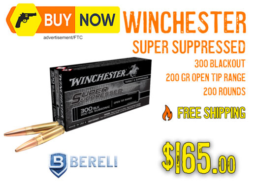 Bereli currently has Winchester Super Suppressed 200 Grain Open Tip Range in boxes of 200 rounds for $165.00 with free shipping.