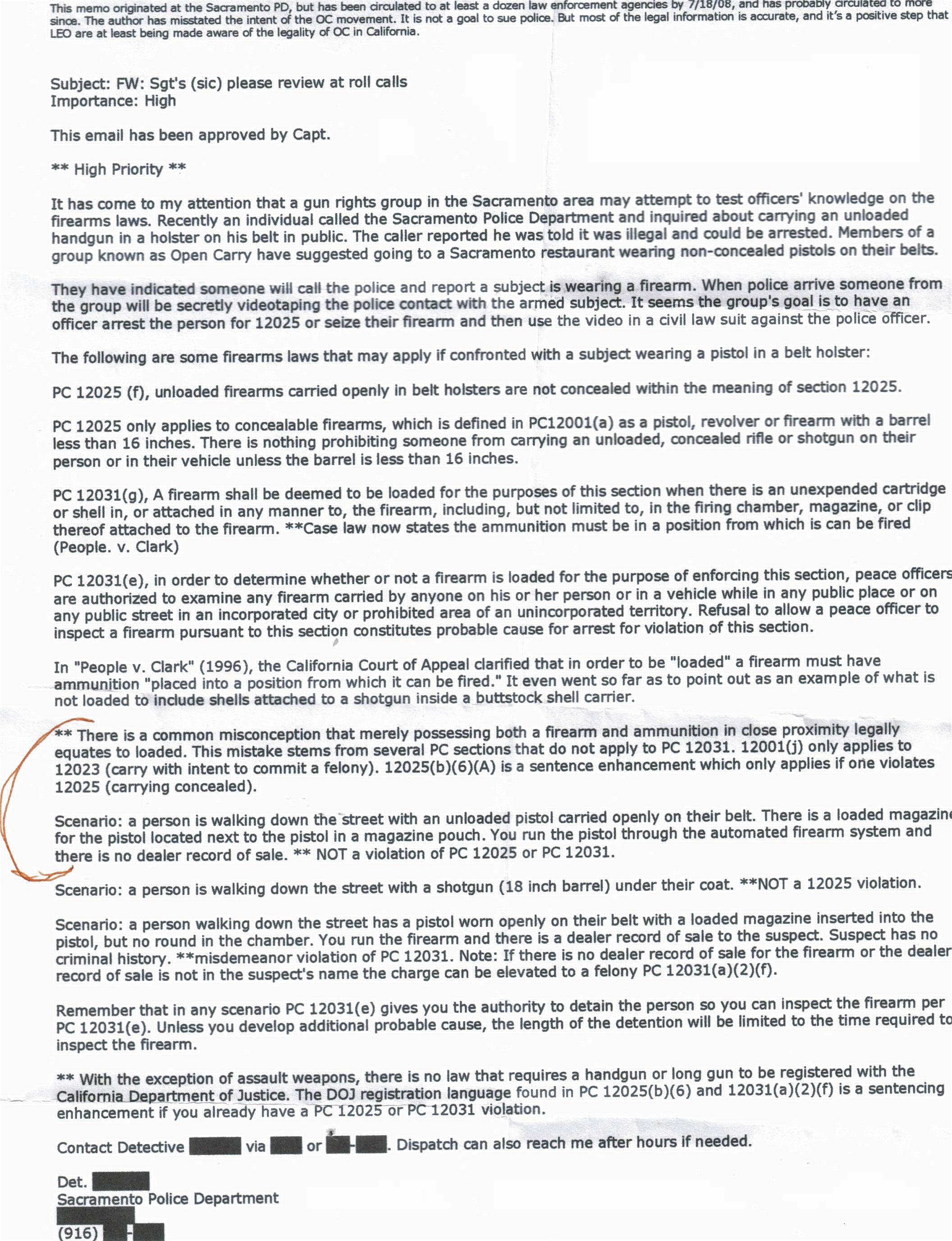 Sacramento Ca –-(AmmoLand.com)- We received this by email with no further explanation but it gives a great inside look at California Open Carry law.