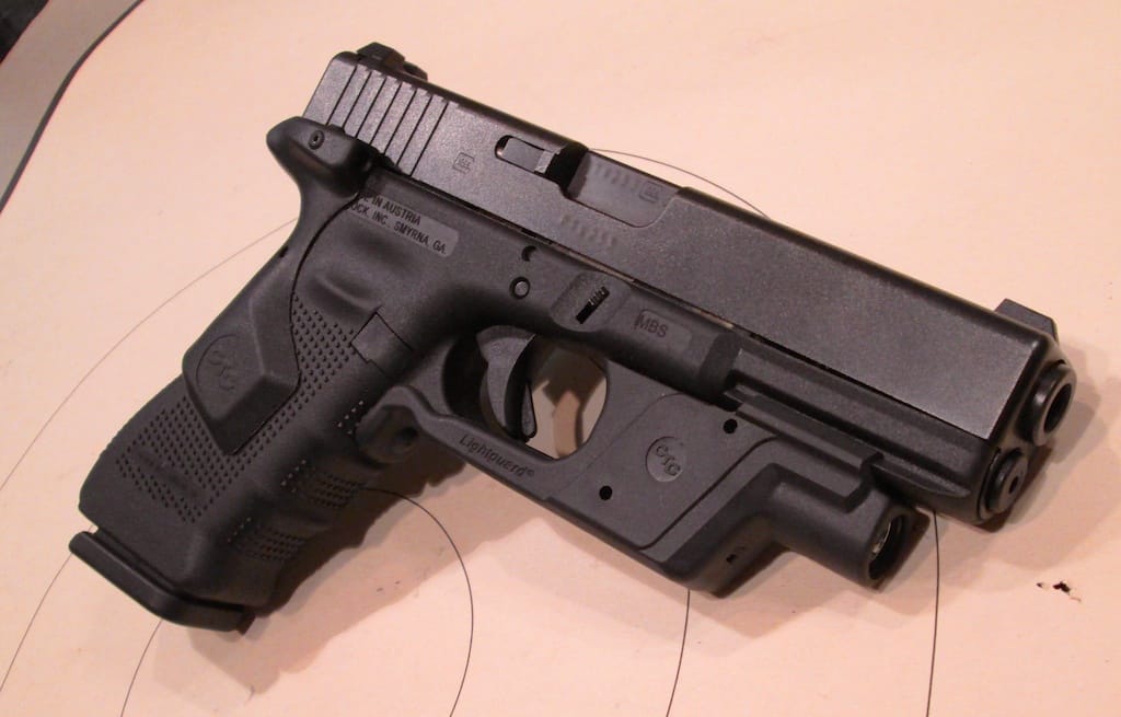I’ve got the Glock 17 Gen 4 configured with a Crimson Trace Lightguard and Crimson Trace LG-850 rear-activated laser. As the Lightguard is front-activated and the Lasergrip rear-activated, these two components are made to work together.