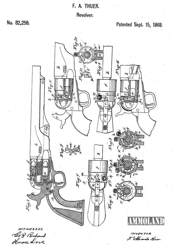 Rollin White a former employee of Sam Colt had come with the idea for a bored out cylinder. This bored out cylinder made reloading a revolver much easier and was a major step in perfecting the metallic cartridge revolver. Sam Colt saw nothing but danger from White’s ideas and rejected them out right. White patented this idea on April 3, 1855.