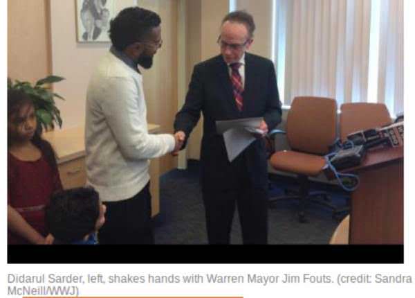 The mayor awarded Sarder with a proclamation at Warren City Hall Thursday.