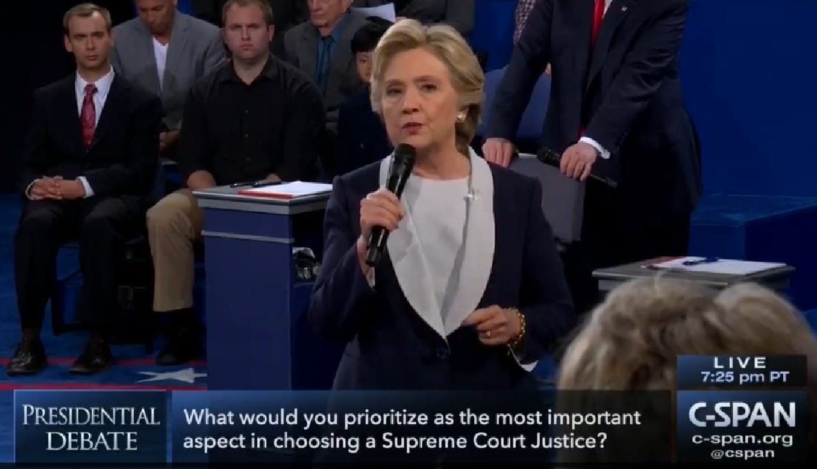 USA – -(Ammoland.com)- “I just want to quickly say, I respect the Second Amendment,” Hillary Clinton insisted in Sunday’s town hall-style debate after Donald Trump pledged to appoint Supreme Court justices who would support the right to keep and bear arms. “But I believe there should be comprehensive background checks, and we should close the gun show loophole, and close the online loophole.”