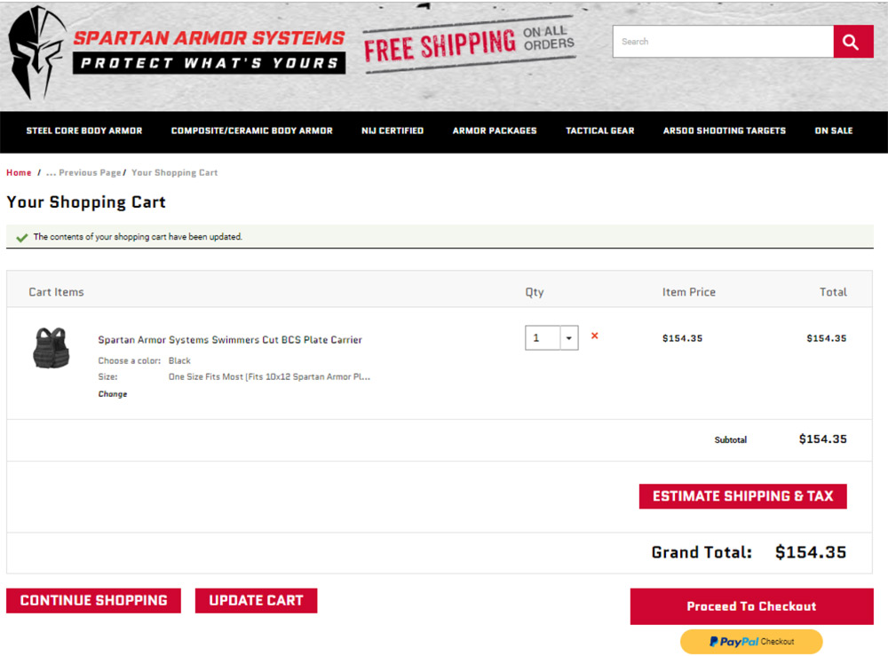 USA –-(Ammoland.com)- Spartan Armor Systems has the popular Swimmers Cut BCS Plate Carrier, in multiple colorways, on sale for just $154.35 with FREE Shipping.