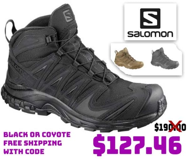 USA –-(Ammoland.com)- U.S. Elite Gear has a sale on the Salomon XA Forces Mid Tactical Hiker for just $127.46 that you can get FREE shipping with an exclusive coupon code that you can only find at Ammoland News, “AMMOSHIPFREE” applied in the cart at check out. They have a good selection of sizes while supplies last in both black and coyote colorways. This boot is usually $190.00 most places online, even the discount kings at Amazon cannot touch this price.