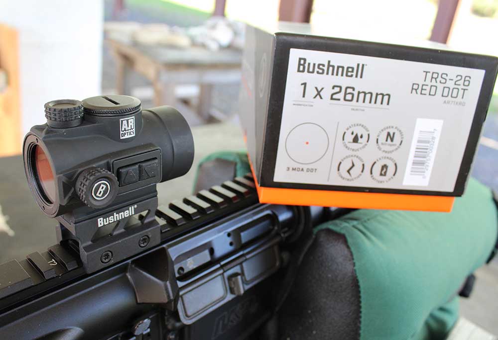 This is a well built and well-designed red dot. Bushnell shows why they rule a huge portion of the optics market. It provides a great field of view once you determine where to place it on a rail for correct eye relief. It is easy to adjust with a coin and no need for a wrench or screwdriver. I noted the box says the unit is Fog-, water- and shock-proof and provides extended battery life. The Bushnell TRS-26 Red Dot Sight is a great unit for a rifle or shotgun, so seek one out. There was no owner manual; you must find the details online, so install at home where you have access to a computer and the internet—that Al Gore invented. MSRP is about $215.