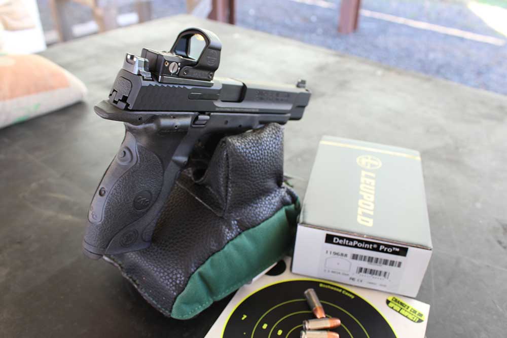 The great news is Leupold Deltapoint Pro Red Dot Sight is easy to use, and you can obtain a base for the S&W CORE 9mm full-size pistol for mounting (my handgun choice), and with 2.5MOA Dot, it’s easy to see. To aid with securing, use the Leupold base and screws, they have a substance on the threads to help the screws stay tight. Look carefully and note that the two small knobs go up and to the rear when you secure the base on a S&W CORE pistol, then the red dot goes atop this. Easy to install and operate, and it’s solid once properly placed into the notch atop the pistol’s slide. Yes, with the base system, it sets into the slide and not atop on a rail.