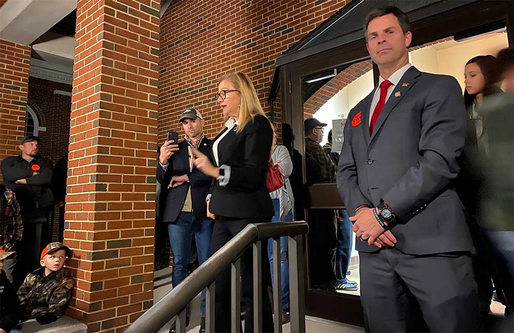Amanda Chase and John McGuire address the crowd outside: