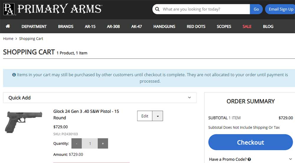 Glock 24 Gen 3 .40 S&W Pistol Deal Cart Check 08/24/2020