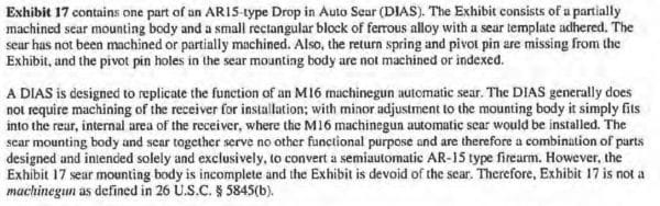 The ATF’s internal NFA manual itself might free the pair [page 11]. The NFA manual states that conversion devices are machine guns only if it was “designed solely and exclusively” to be used to convert a semi-automatic firearm into a machine gun. It further states that the part had to be produced for “no other reason than to convert a weapon into a machine gun.”