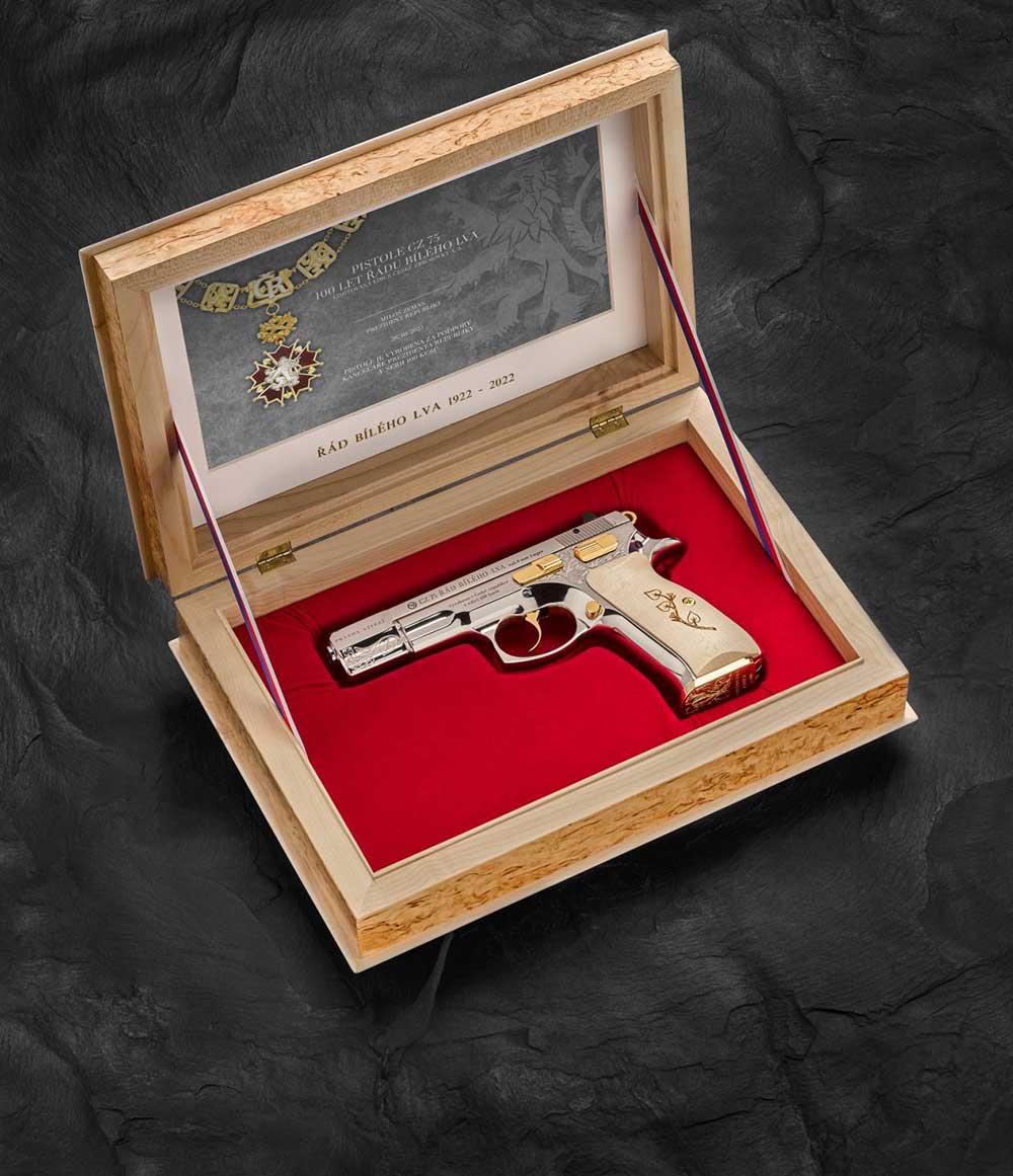To commemorate the centennial of the Order of the White Lion, the Office of the President of the Republic commissioned a limited hand-engraved, 100-piece edition of the legendary CZ 75 pistol from Česká zbrojovka (“CZ”), the Czech Republic-based subsidiary of Colt CZ Group and a long-term proud partner of the Czech Armed Forces.