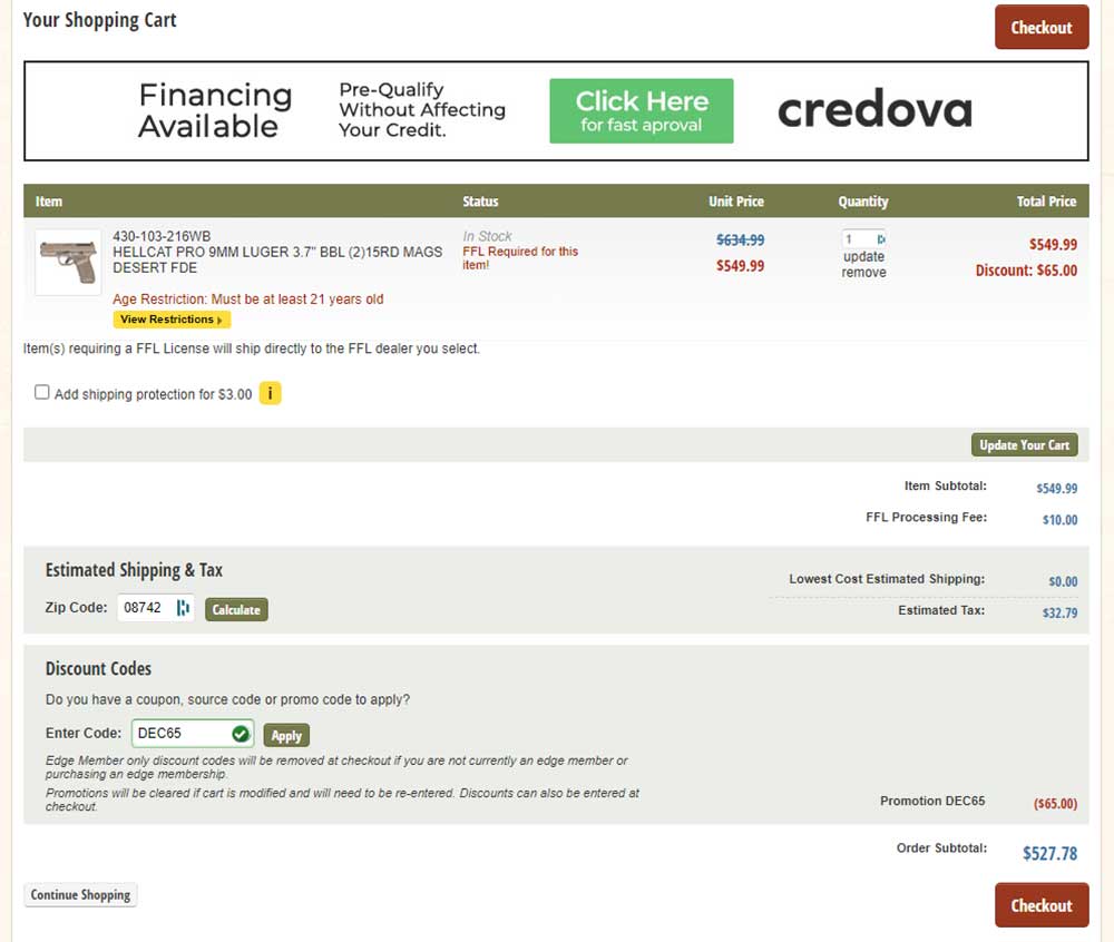 USA –-(Ammoland.com)- Brownells is having a sale that, combined with coupon code “DEC65”, you can pick up the new Springfield Armory Hellcat Pro 9mm Pistol in FDE for just $484.99 with FREE shipping.