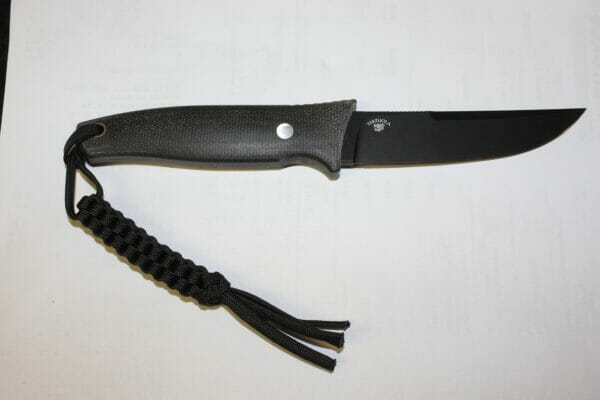 It comes with a black Kydex sheath. I like the sheath. The knife snaps firmly into it, and anything short of jumping off the top of the Empire State Building shouldn’t dislodge it! This is an important feature for two reasons: