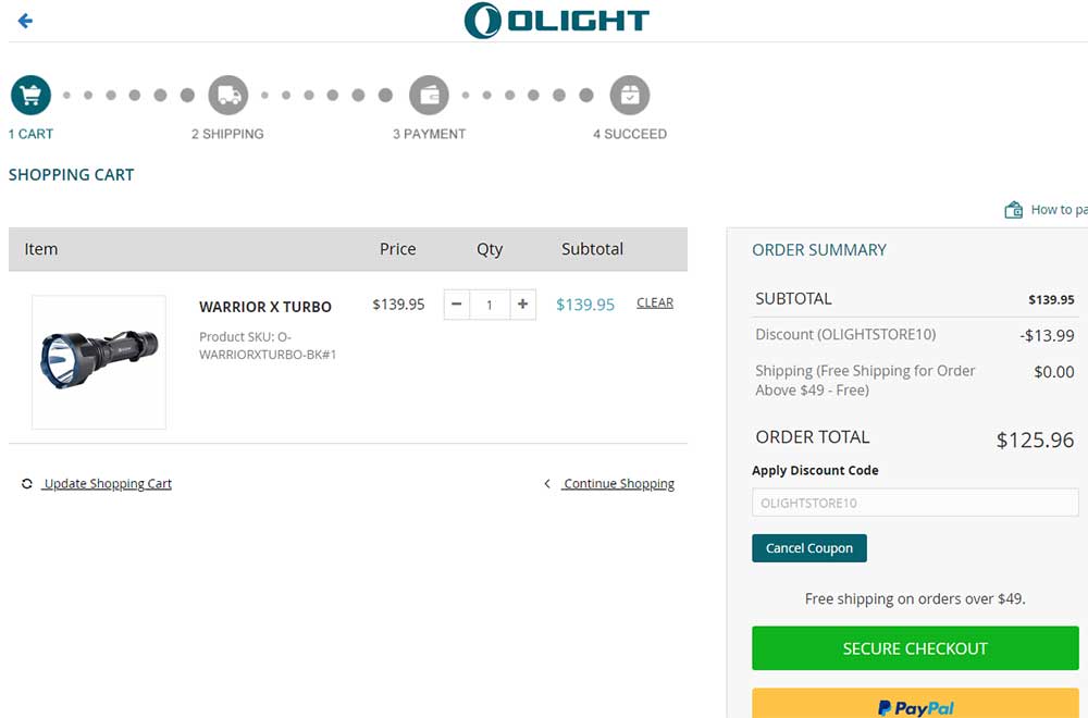 Olight Warrior X Turbo Tactical Extrm Distance Flashlight Deal Cart Check