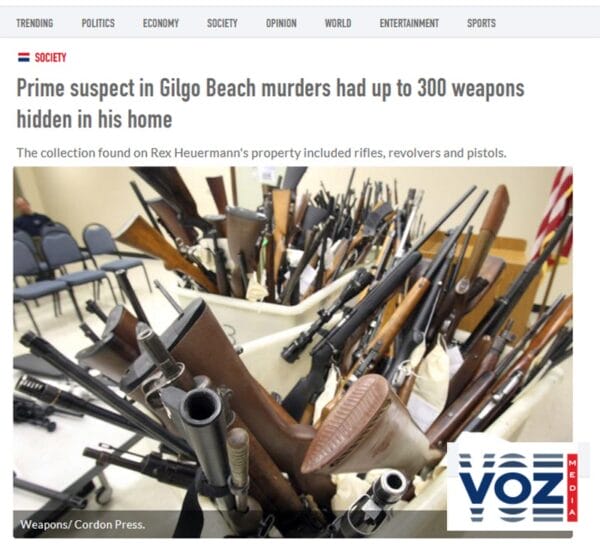 “300 weapons hidden in his home” The connotation is automatically nefarious, even though they may be properly secured in a safe or hidden room to keep from being stolen by thieves. I don’t have that many, but mine are “hidden” in safes in my house. No firearms were used in his murders, yet the fact that he had all of those firearms, puts extra onus on how evil the guy is. Because of them, he’s even eviler.