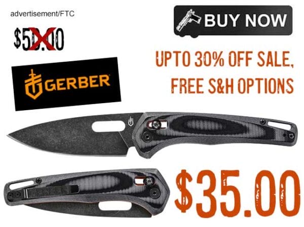 Our friends at Gerber Knives are having an up to 30% off weekend sale on select knives, multi-tools, and gear. Stock up and save while supplies last. For example, the Gerber Sumo Folder knife is now $35.00. There is FREE shipping for orders over $50.00. That is 30% off the $50.00 MSRP. There are over 100 items on sale that will get you ready for any outdoor adventure!