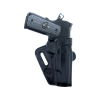 The Thunderclap’s near-neutral (vertical) cant gives it the fastest, wrist-locked draw stroke, while the reinforced opening provides easy, one-handed return to the holster. Relieved at the base of the trigger guard, it allows a full firing grip in the holster. The metal-reinforced tunnel-style belt loop provides excellent rigidity during carry and on the draw, and the trailing belt slot aids with concealment – even with large defensive handguns. A molded sight rail prevents snags on the draw.