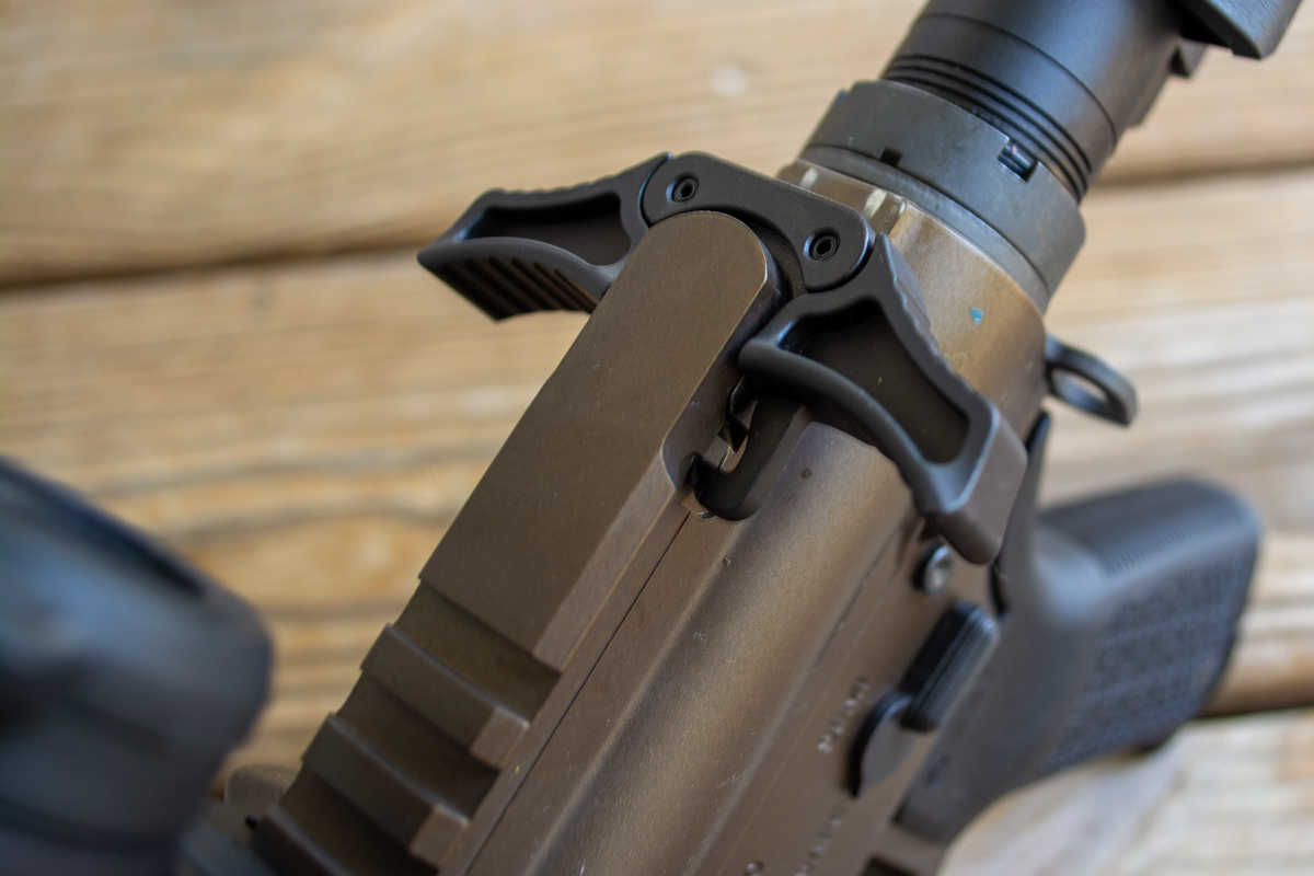 - Upgraded charging handle: This CMMG part is oversized with generous grab points on both sides. The release latch function is also ambidextrous. I love it.