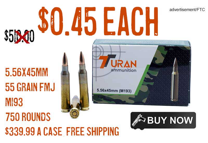 TrueShotAmmo has 750 round cases of Turan 5.56x45mm 55 Grain FMJ M193 Ammunition for $0.45 each with Flat Rate or FREE shipping options.
