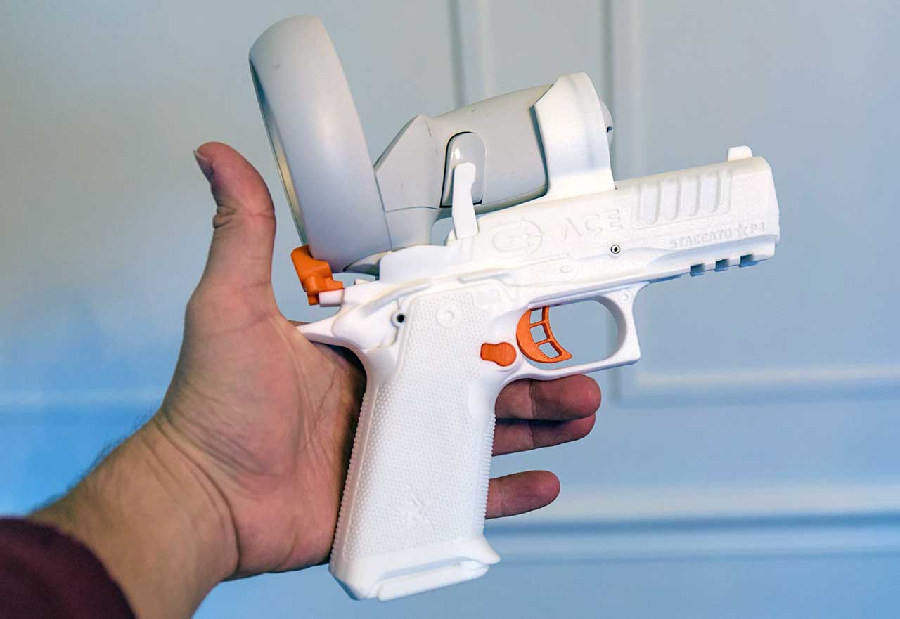 By using the Staccato HD P4 Handset, Ace members can safely and conveniently replicate the experience of this cutting-edge firearm from the comfort of home.