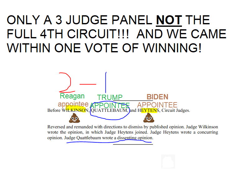 Fourth Circut Court?? OH YES! There was a misspelling! The CORRECT SPELLING IS: “THE FOURTH CIRCUS COURT” which is nothing but LEFT LEANING STUPID ACTIVISTS!