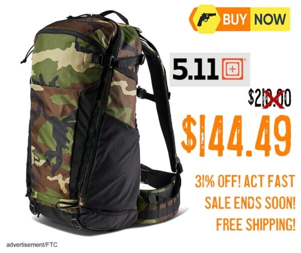 5.11 is having a sale on some popular products like the 5.11 Woodland Camo Skyweight 36L Pack marked down to $144.49, with FREE shipping—that is 31% off the MSRP! You save $65.00+.