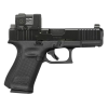 If shooting with a handgun, start holstered. If shooting with a rifle, start from the low ready. At the beep, you are going to draw and/or aim at the small dot and fire one round. You’ll then transition to the checkered box and fire three rounds. Regardless of platform, you have 2.5 seconds to succeed.
