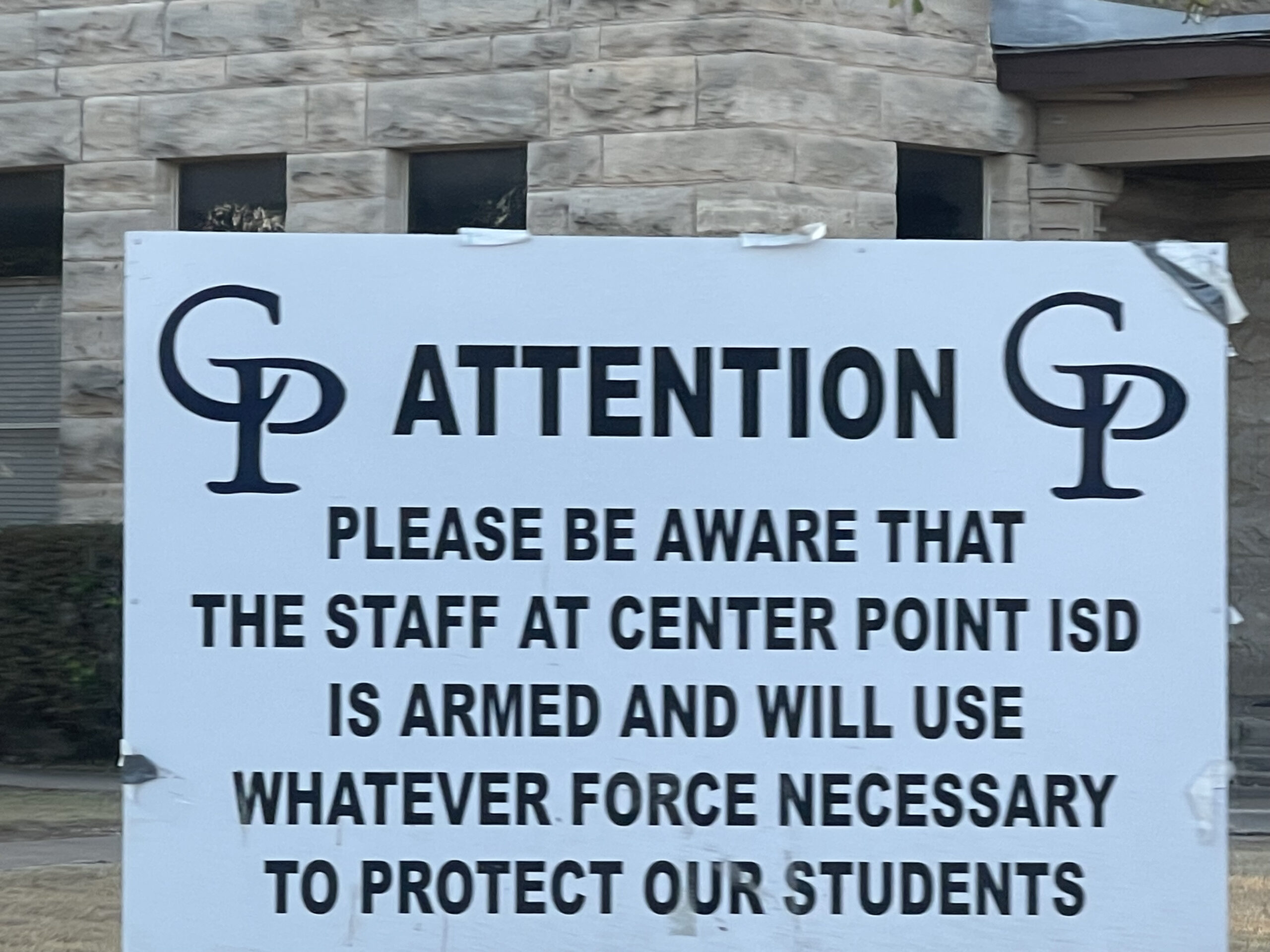 Center Point schools in Texas have a similar warning sign that’s a delight to see and is a great answer to the question, how do we keep our public schools safe for children and teachers.