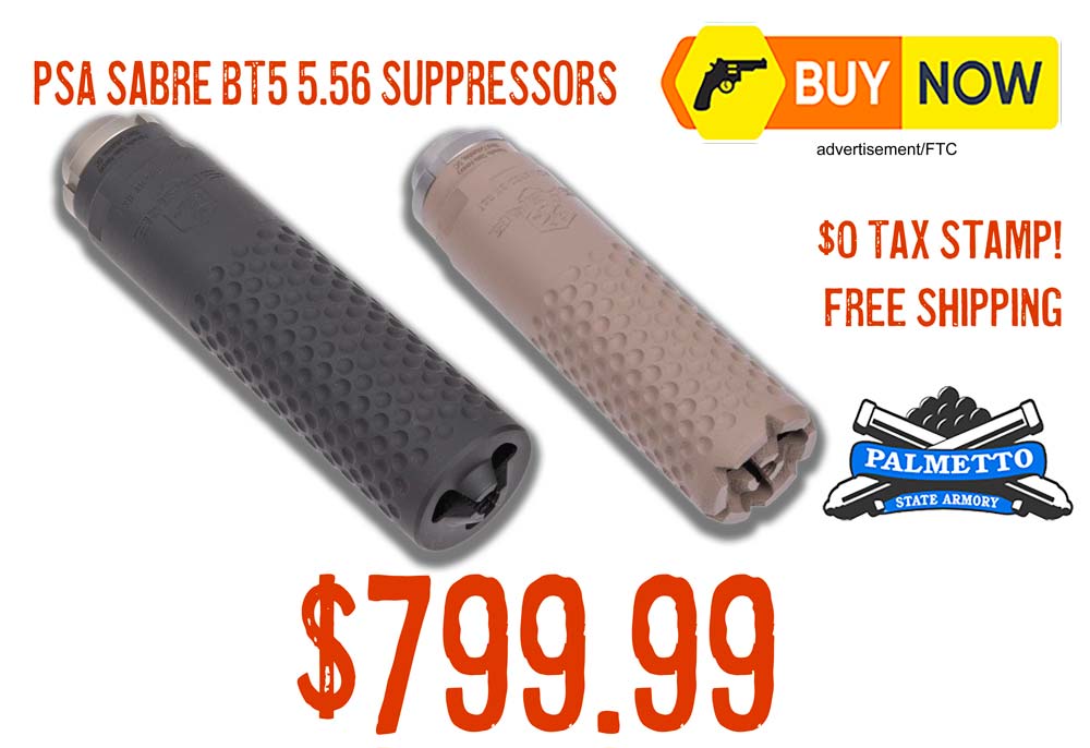 Now is the time to purchase a new suppressor with a $0 tax stamp! Palmetto State Armory has the Sabre BT5 5.56 suppressors available for $799.99, a great price for a dedicated 5.56 suppressor.