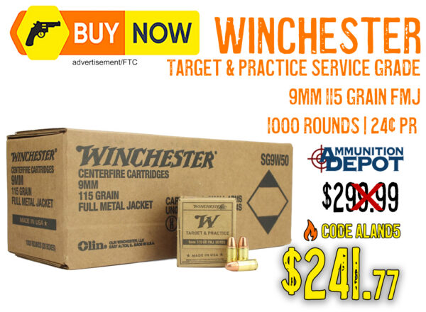 If you’ve been waiting for a good time to stockpile dependable 9mm range ammo, this Winchester Target & Practice Service Grade deal is worth a hard look. Ammunition Depot has the 1,000-round case priced at $254.49, and when you use code ALand5, the price drops to just $241.77, bringing your cost down to about 24 cents per round for brass-cased Winchester FMJ.