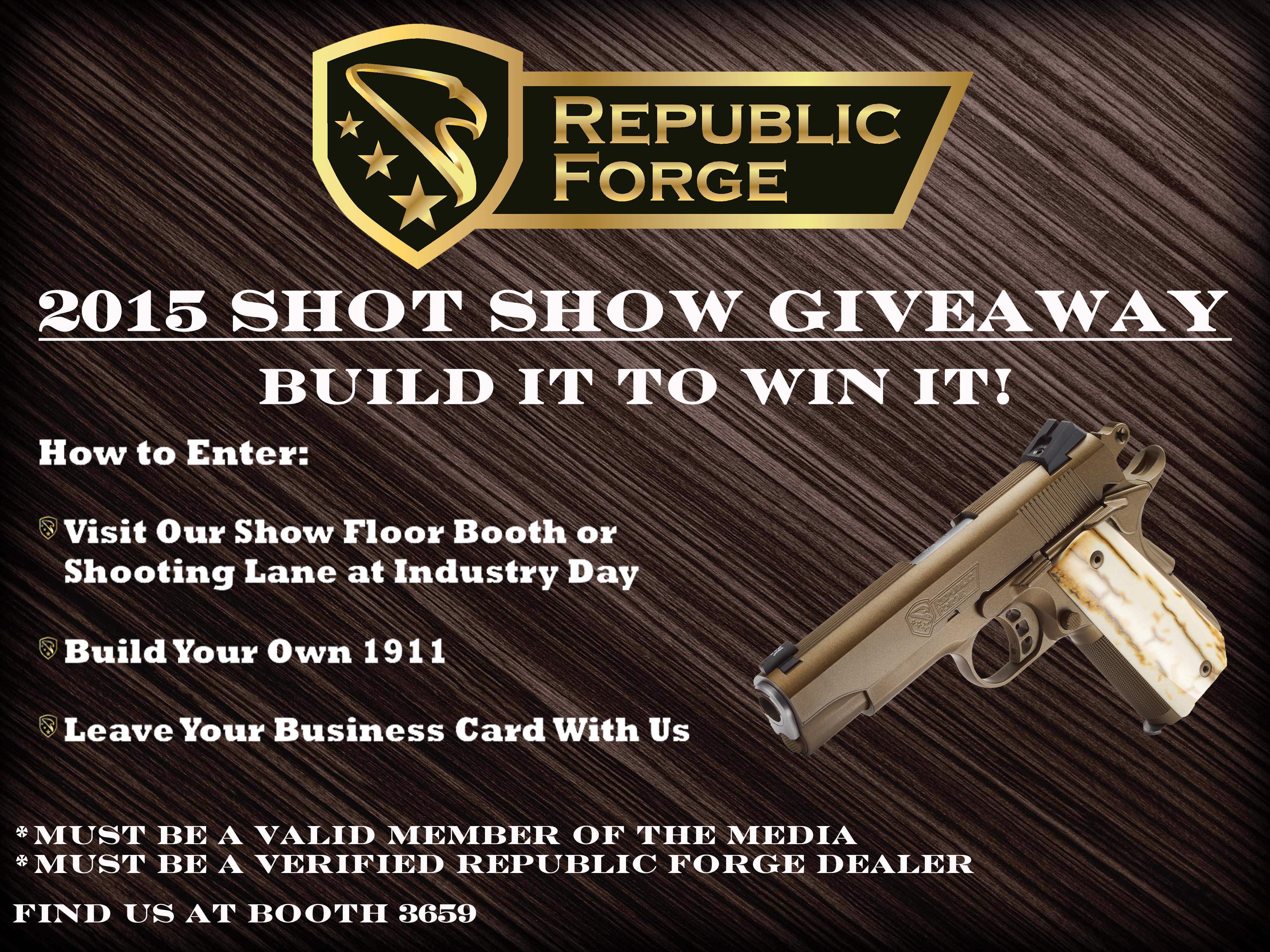 Republic Forge will be giving away a custom 1911 to ONE member of the professional media and ONE existing Republic Forge dealer at the 2015 SHOT Show.