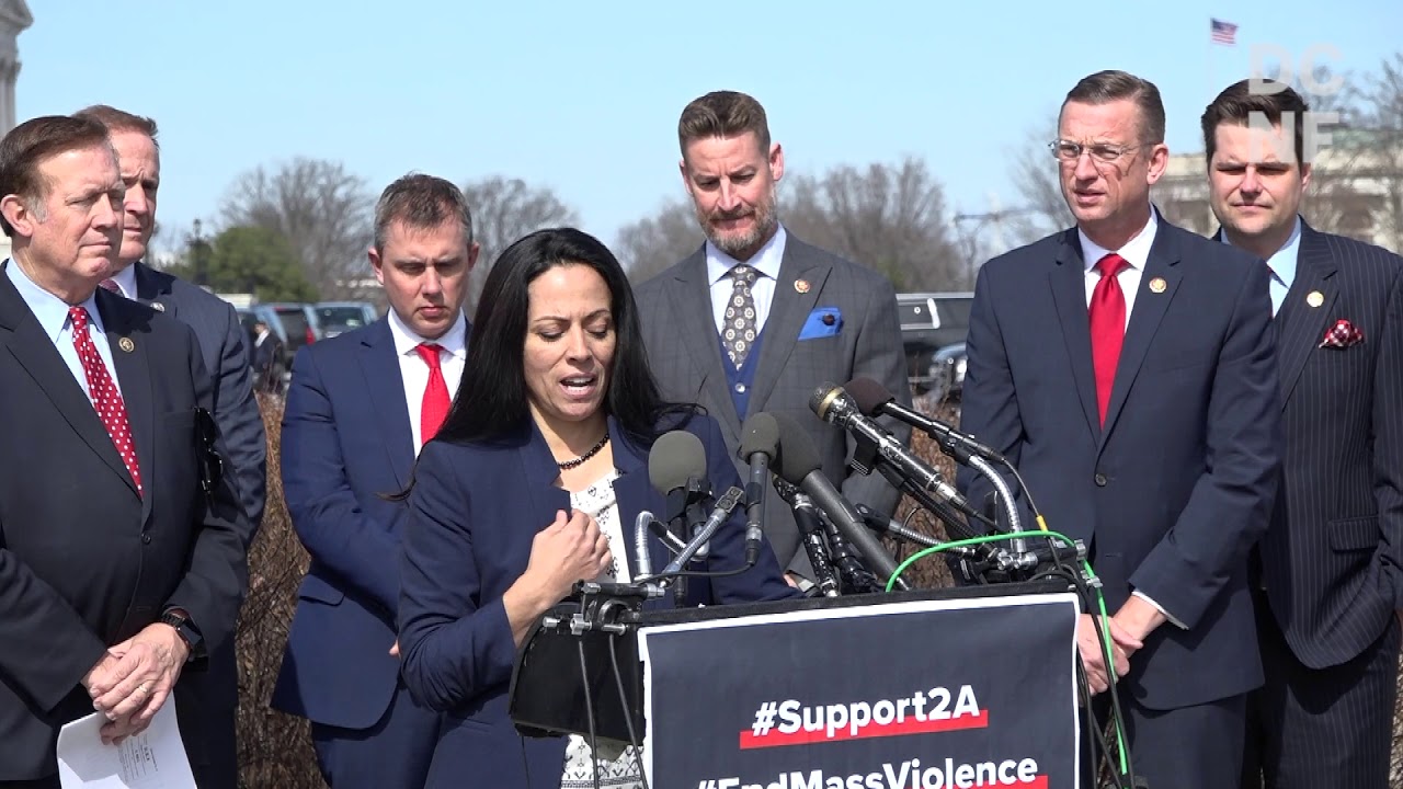 A host of Republican congressional members gathered outside the Capitol Building on Tuesday to express opposition to a pair of anti-gun pieces of legislation that House Democrats are poised to bring..